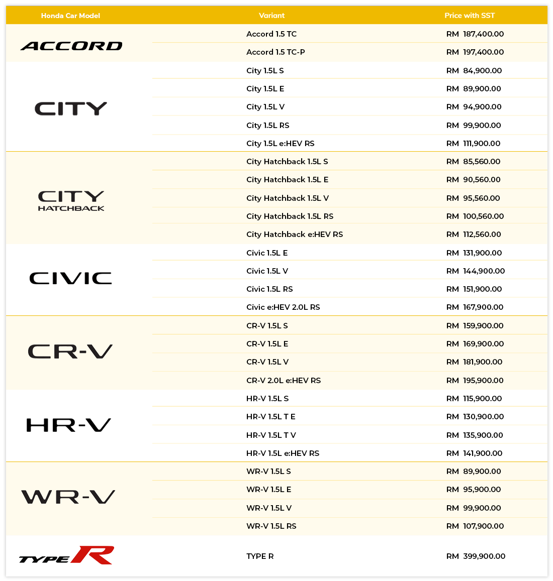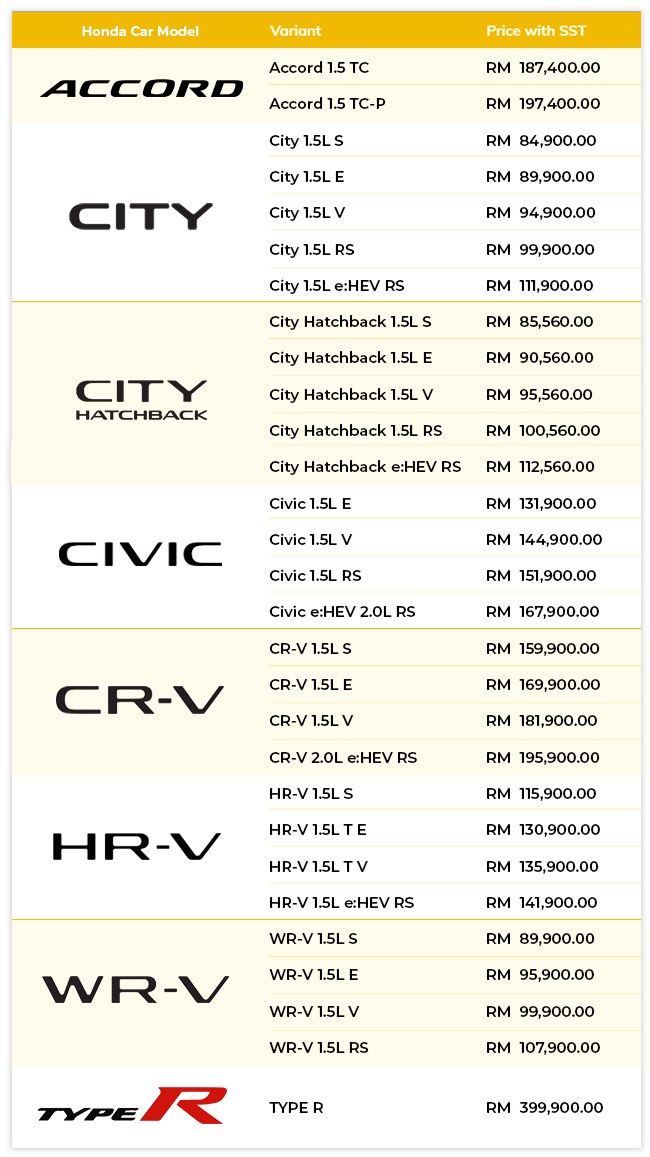 LATEST HONDA PRICE LISTS